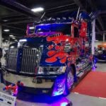 The Optimus prime truck was set up in the middle all lit up gorgeous like. This heavily modified Western Star is flashed up with a stunning paint job and aerodynamics. Massive triple stacks on each side just make this thing a beast and force you to wonder: “How the hell did they get this thing in here?”