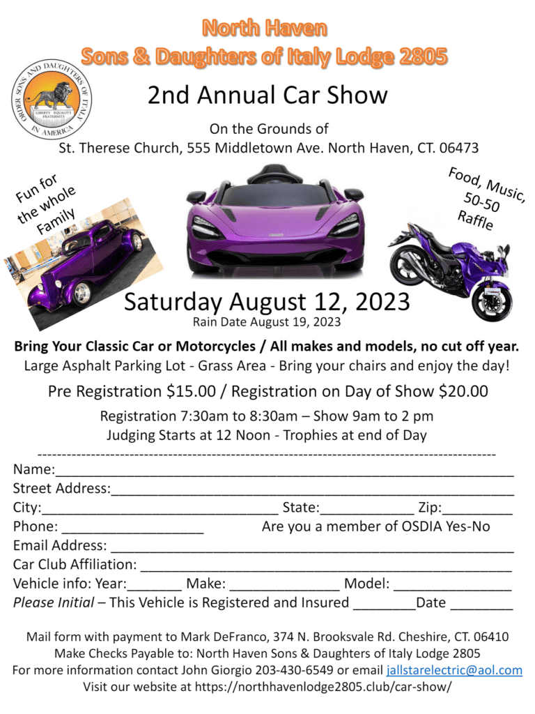 CT – North Haven – Sons & Daughters of Italy Lodge 2805 Car Show