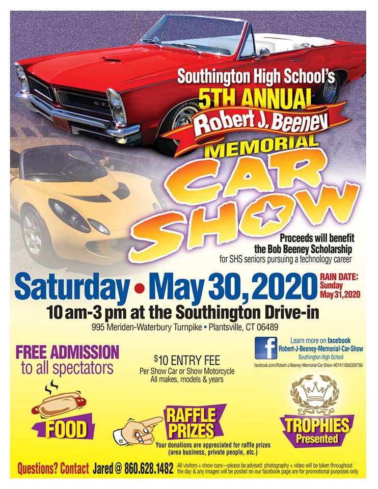 There will be trophies, music, food and a raffle at the event. Judging will be conducted by car owners and spectators. All profit generated will be used for a scholarship for a Southington High School senior pursuing a technology education-related career in honor of Mr. Beeney, a former Southington High School Automotive teacher.