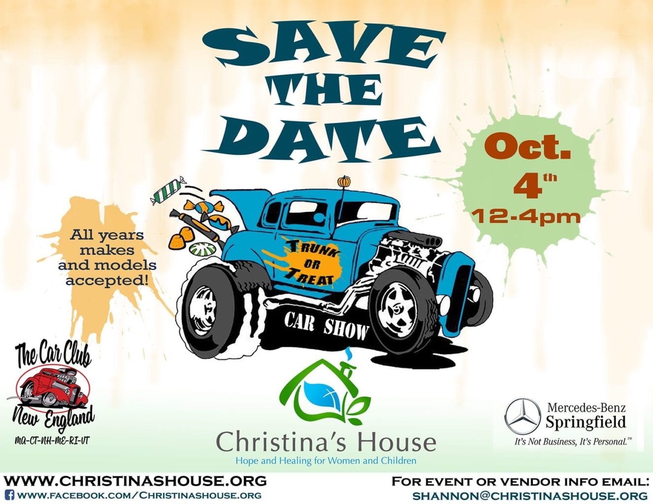 Christina’s House in coordination with other area organizations will be hosting our 2nd Annual Trunk or Treat Car Show on Sunday, October 4th, 2020 at Mercedes-Benz of Springfield from 12-4 pm. Registration is $10 per car and begins at 11:30.