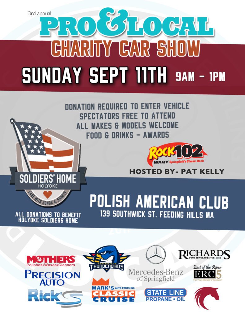 100% of money raised is donated to the Holyoke Soldiers Home for our veterans! All makes & models are welcome. Cost to enter your car is a donation to the charity of any amount you chose. There will be Food Trucks, Coffee, Drinks, Awards, and Raffle prizes.