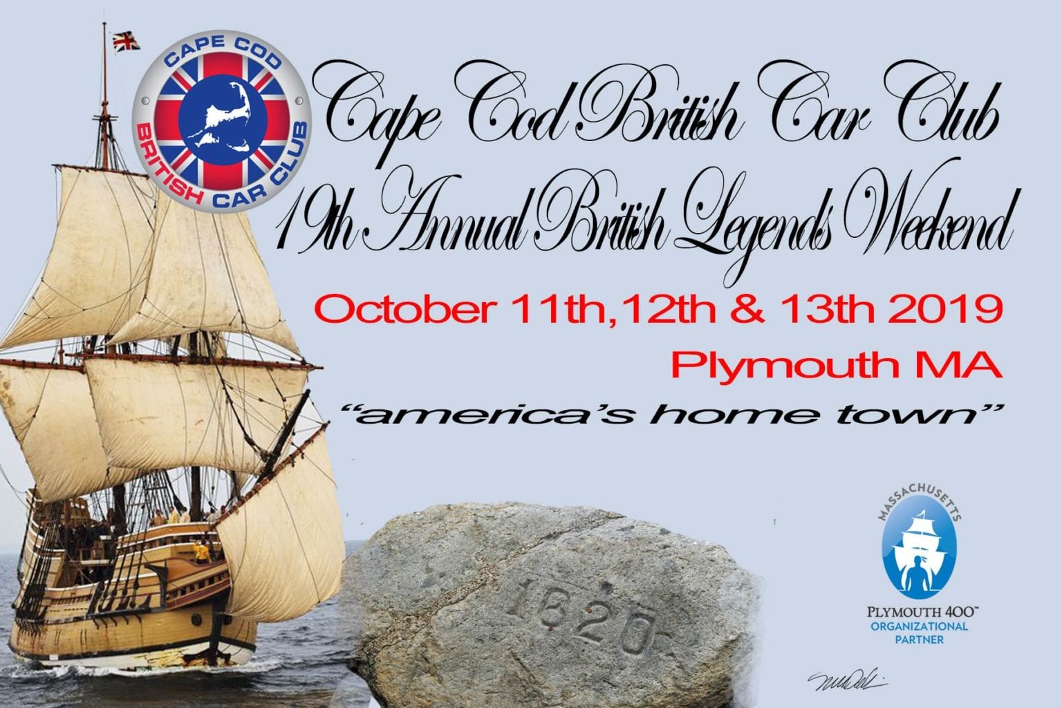 On October 9th-11th, the Cape Cod British Car Club will host British Legends Weekend in America’s Hometown – historic Plymouth, MA. All events will be centered in the Plymouth area, an exciting destination for our event and for visitors from around the world.