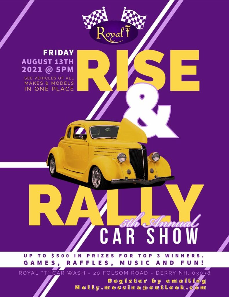 | Every year Royal ‘“T” Car wash & the Salvation Army hosts a car show in Derry, NH. Bring your friends and family to an event you don’t want to miss. Raffles, games, prizes for spectators and top 3 winners. Of course CARS of all makes, models and ages. 2019 we had over 50 cars and expecting many more this year. COME JOIN THE FUN, FREE REGISTRATION HERE: molly.messina@outlook.com |