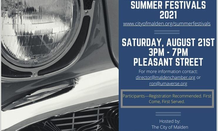 Read MoreANTIQUE, HOT ROD AND MUSCLE CAR SHOW SATURDAY, AUGUST 21ST 3PM – 7PM PLEASANT STREET For more information contact: director@maldenchamber.org