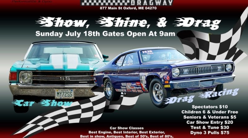 Read Morefrom facebook event page: Annual Show, Shine, & Drag! Brought to you you by New Oxford Dragway, Oxford Plains Speedway,