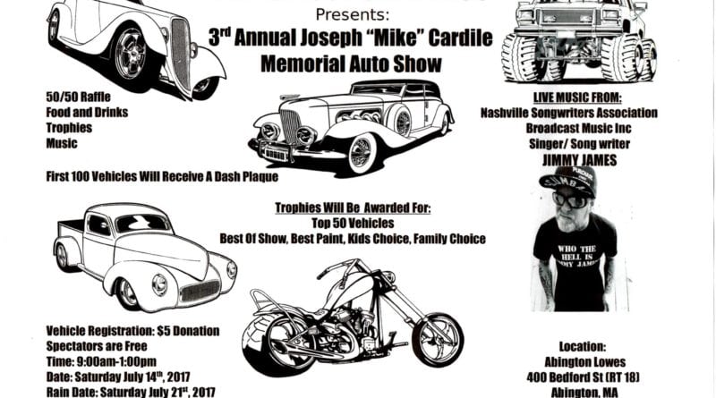 Read MoreAnnual Joseph “Mike” Cardile Memorial Auto Show on Saturday July 14th 2018 from 9am-1pm ALL PROCEEDS WILL BE DONATED TO