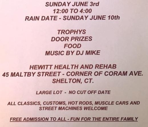 Read MoreCruisin Shelton Sponsored by Hewitt Health and Rehab in Co-operation with the Round Town Cruisers. Sunday June 3rd 12PM –