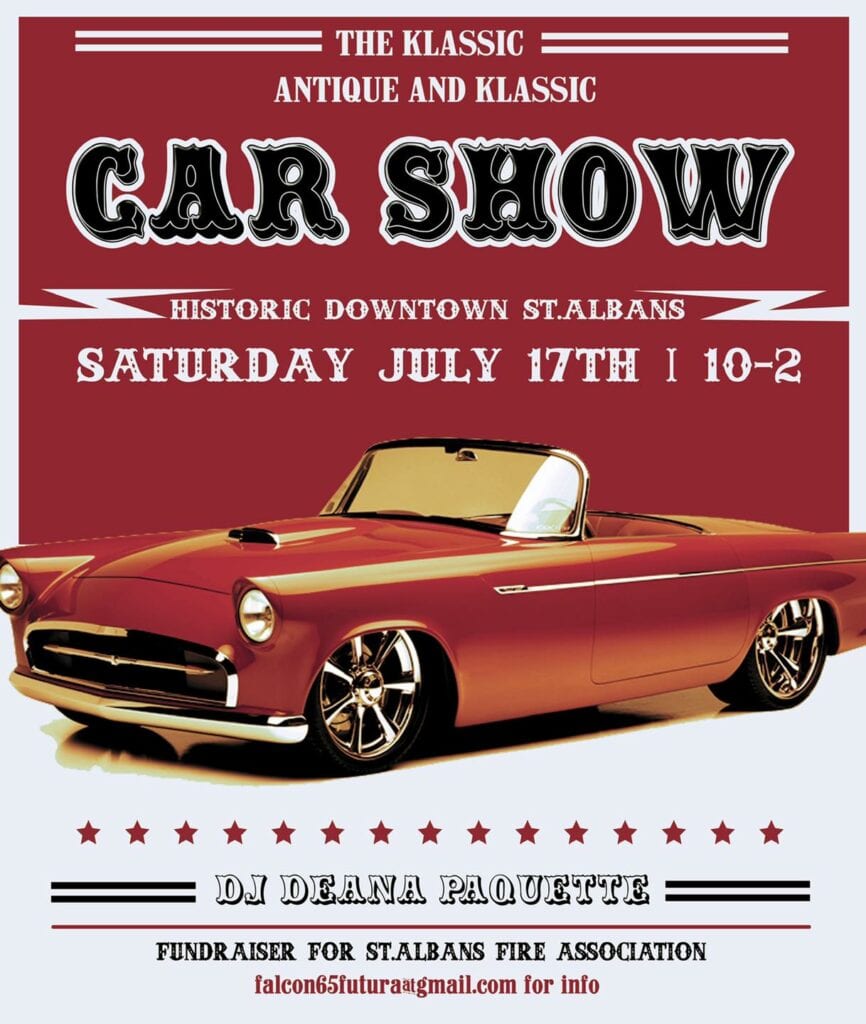 THE KLASSIC …an antique and classic vehicle show with lots of fun things to do while visiting Downtown St.Albans. This is a fundraiser for the St.Albans City Firefighter’s Association. The cost is $10 preregister and $20 day of show to register a vehicle. The show is FREE to spectators. We will be cooking up a $5 Lunch Box Special from 11:30-1 and having a Tug of War at 11. Deana Paquette will be our special DJ to rock us through the day. Awards are at 1:30. Don’t forget the Farmer’s Market is sharing their day with us. Check them out.